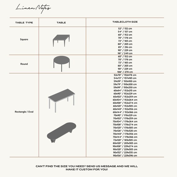 Tablecloth Sizes Illustrated Charts Guide