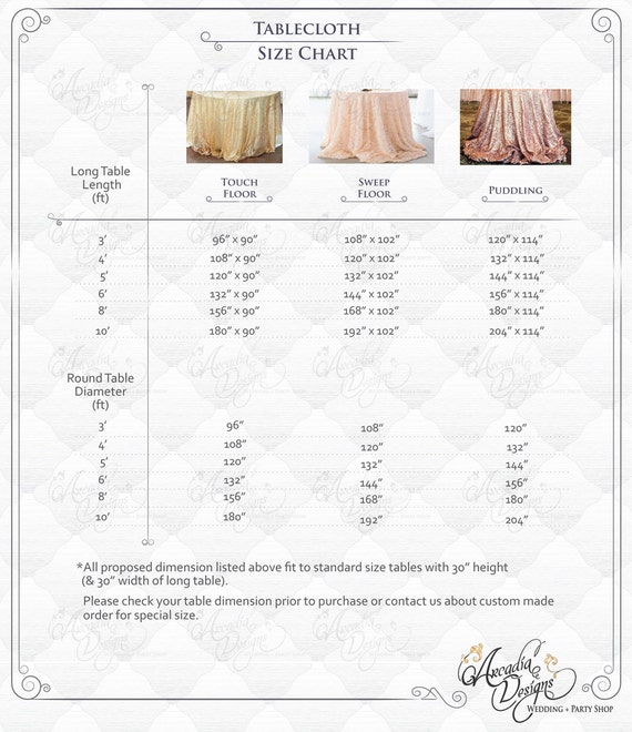 Shopping For A Tablecloth Start With Our Size Calculator Tablecloth Size Chart Table Cloth Round Tablecloth Sizes